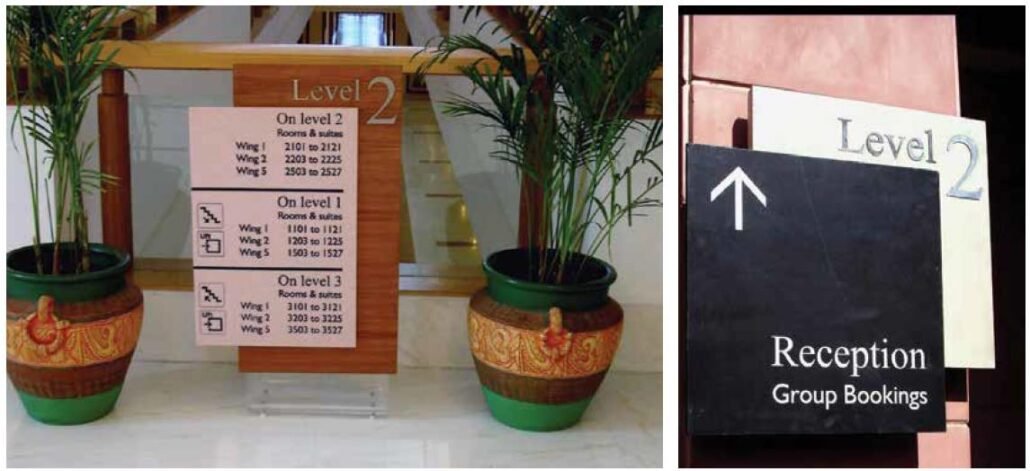 Design solution of New Delhi-based VersionAbsolute Design Studio (VADS) was to rationalise the room addressing system by introducing ‘Level’ and a ‘Wing’ in the room numbers and reflect the same in the navigation signs. The design paid homage to the prevalent material and techniques in the region.