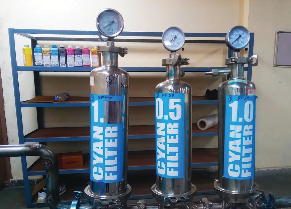 “Following the strict guidelines laid by our technology partner Chenbang Ink Company, we currently produce around 8,000 litres of inks per day. In a month, it’s more than 200,000 litres we normally deliver,” tells Rajat, adding, “Chenbang Ink Company is known for being one of the world’s largest producers of solvent and eco-solvent inks. We follow their policy guidance. We test every drop of our ink before it goes into bottling. We do first viscosity test in every 30 minutes and then after the lot is ready. We do filtration and drop test before we filter the ink in 4 steps. So, in short, our inks are good for printer even before final filtrations is done in our tests and there is negligible chances of it causing blockages after the final 4-step filtration”