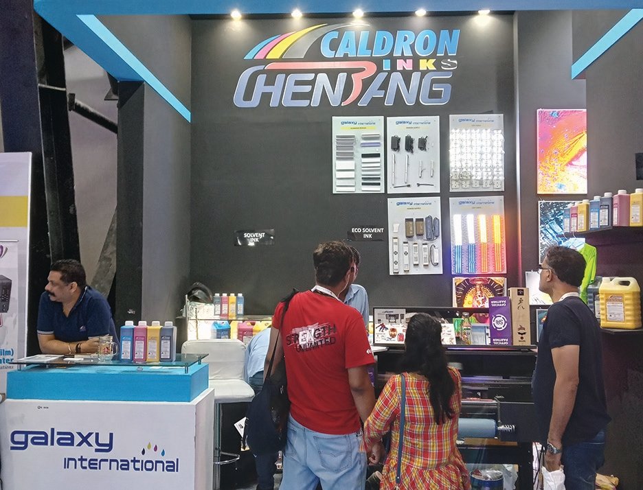 Showing a line of its flagship products including the two highly advanced and efficient UV roll-to-roll printers such as ENZO-32 UV and Blaze roll-to-roll printers with EPSON T3200 printheads, Mehta Hitech Industries revealed the new potential and possibilities of UV printing. Shailesh Mehta, Director of Mehta Hitech Industries Limited, mentioned the UV printing solutions they presented are powered by the EPSON T3200 printhead. Caldron-Chenbang Inks in collaboration with Galaxy International presented a finest range of range of solvent & eco-solvent inks. Rajat Mitra, Director of Caldron Chenbang Inks Private Limited, said the inks have set a new benchmark of quality in the Indian market.