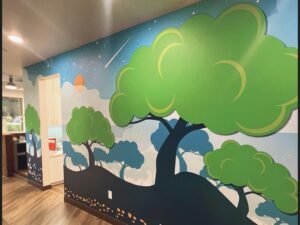 Colorado’s Lone Tree Pediatric Dentistry recently underwent a complete rebranding, transforming their space from the ground up. The print service provider spearheaded this transformation beginning with striking new monument faces and vibrant channel letters. Inside, the team crafted engaging dimensional signs and brought the dentist’s unique brand identity to life with two captivating wall murals. At the heart of the logo lies a distinctive tree, which inspired us to create a whimsical forest setting for their young patients. The talented in-house design team meticulously crafted two distinct wall wraps, spanning an impressive 265.05sqft. The wall graphics were printed on DreamScape Cavier Texture Wall Wrap from Lexjet and printed on EPSON SureColor 80600.