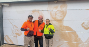 Renowned design and printing company Grafico in collaboration with The Block 2025 contestants Britt and Taz and local roller door company 4D Doors created an Aboriginal art. As the official wallpaper product sponsor for popular Channel 9 reality TV show ‘The Block’ for the last 11 seasons of the show, Creative Director and Founding CEO of Grafico Group, Damian Corney, was delighted to hear that 4D Doors had the appetite to do something different for the final ‘reveal’ of this year’s The Block season. The artworks were digitally printed using Canon Colorado at Grafico with the designs showcasing the key strengths of the printer’s UVgel technology. Durability of the UVgel inks ensures the prints are able to endure the wear and tear that they will likely receive being wrapped on a giant garage roller-door.