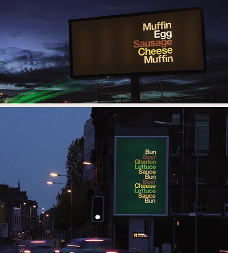 McDonald’s, whose marketing has been tilting increasingly toward minimalism in its European advertising, has launched an outdoor campaign that’s both subtle and loaded with swagger. The ads created by Leo Burnett London mentioned nothing about the fast food chain’s brand by name, its logo or product pictures. Instead, commuters could simply see a list of key ingredients that make up some of McDonald’s core products—Filet o’Fish, Egg McMuffin and Big Mac. But colour plays a key role, with each ad’s palette being true to McDonald’s branding.