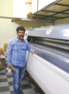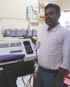 Always jammed with local walk-in customers, Ramesh Digital Prints in Triplicane area of Chennai is one of the popular print service providers in the city. Proprietor of the firm, S Mahesh Babu, worked in different graphic arts establishments before he decided to open his own entity under the name Ramesh Digital Prints. In the year 2002 he inaugurated the production facility of the company with the installation of a Gongzheng 3204 GZC printer. Later, the setup has been upgraded with other advanced machines including a Roland VersaCAM RF-640A printer and a line of other finishing machines.