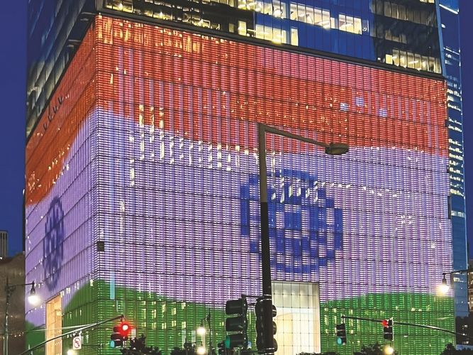 Animated Indian Tricolour on iconic World Trade Center in New York