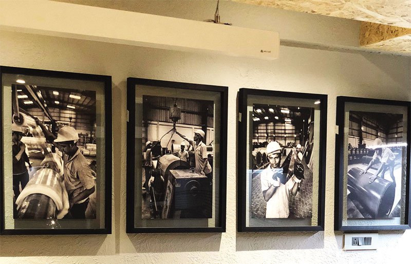 Another marked feature of the interiors is a frame having images of the shop floor team in action as a constant reminder to the marketing about the effort that goes into making the perfect product and also helping the front office connect to the backend.