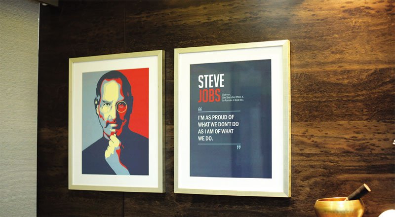 Customised graphic illustrations were designed for every room of the senior management team in office, reflecting the personality of the occupant in terms of their idols and inspirations.