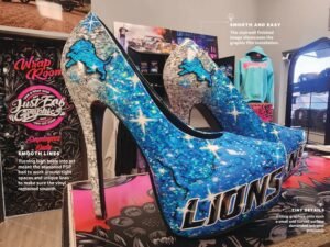 Detroit Lions-themed stilettos have created one-square-foot masterpiece in Mt. Pleasant, MI. It signifies the general saying ‘size doesn’t matter’ — at least not when it comes to creativity. Owner Lindsay Theisen and her team proved that wide-format creativity knows no limits — transforming platform stilettos into playoff-worthy fan art using high-quality vinyl and meticulous attention to detail. Theisen and her crew accepted the challenge of wrapping these size 8.5 pumps with custom Lions graphics in celebration of the team’s NFL playoff run. Using Avery Dennison 1105 vinyl and 1360 laminate, and printed on a Roland DG TrueVIS VG3-540 wide-format eco-solvent printer/cutter, the Just Fab experts turned high heels into high art.