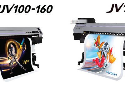 The new JV100-160 (eco-solvent ink) and the UJV100-160 (UV LED ink) from Mimaki are going to be available in early