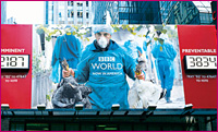 Best of Show honours were awarded to BBDO New York for its BBC World campaign, featuring a series that was entered into the following categories: digital display media series campaign, media series campaign, and media billboard. The interactive digital billboards display politically charged images and messages based on current events. The right and left side of the billboard display constantly updated poll numbers reflecting the contrasting opinions of passersby who use Bluetooth technology to register their vote on such topics as whether China should be regarded as a friend or a country of which to be wary.