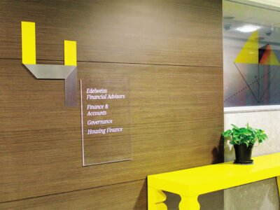 Design firm Leaf Design has nurtured limitless possibilities and solution through disruptive metaphor of origami paper art to portray the expertises of Edelweiss House, a financial powerhouse, in Mumbai. Origami shapes paper into million possibilities, depicting intelligent and smart solutions. Even the custom number typography was designed using the theme of origami.