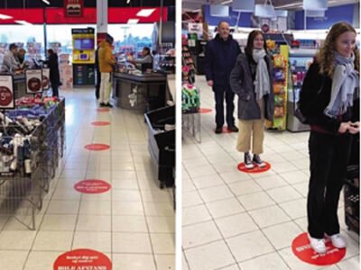 Public health officials recommend keeping a distance of six feet between people, or around two metres, to reduce people’s chances of spreading the COVID-19. People have devised various ways to demarcate the prescribed social distancing norm in the retail environment using chalk, paints and other crafty means. However, nothing can be as effective as printed floor graphics using nowadays increasingly to guide shoppers around a retail space safely.